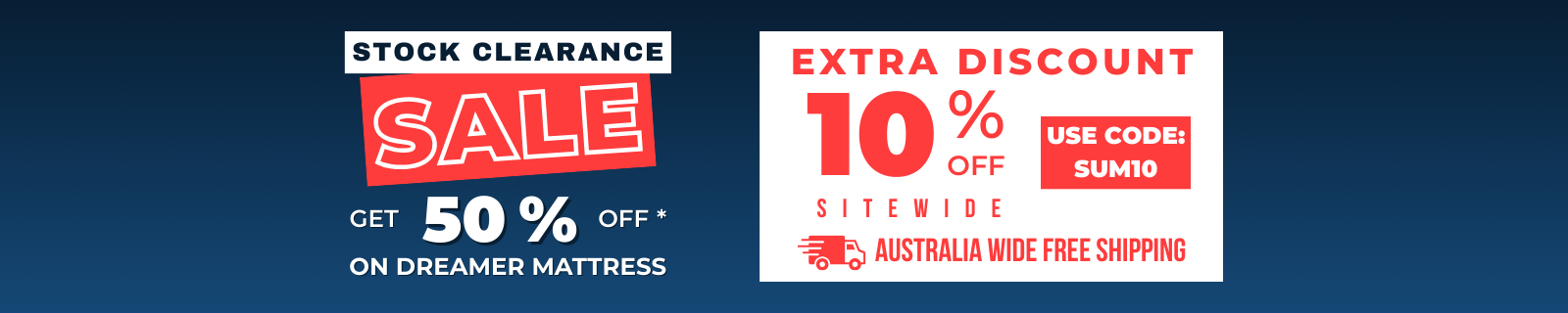 Stock Clearance Sale - 50% off on Mattresses + Extra 10% Sitewide